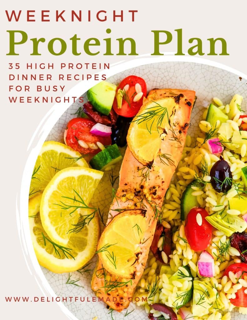 - PLUS: The Weeknight Protein Plan Toolkit that includes a 4-step plan for weeknight dinner planning, grocery lists, pantry-restock worksheets, a 7-day protein meal plan, and SO MUCH MORE!!