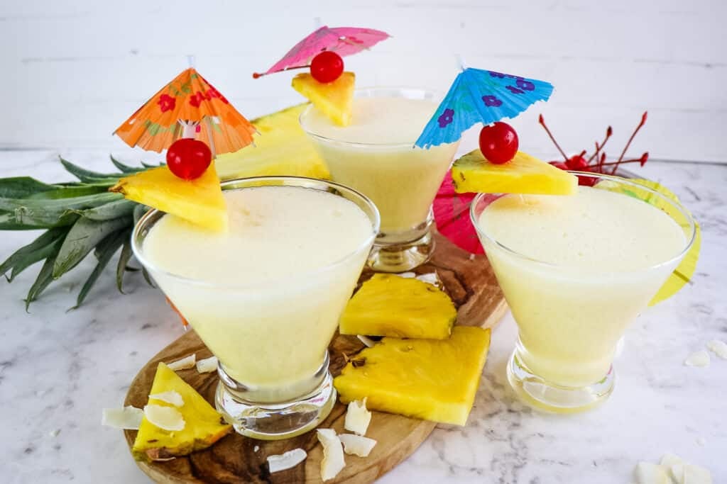 Do you love a Malibu Pina Coladas, but not all the sugar and calories that a classic cocktail contains? Try these delicious Skinny Pina Coladas! This low calorie pina colada is just 5 ingredients and 220 calories. Its less than half the calories and sugar of the traditional Malibu Pina Colada recipe.